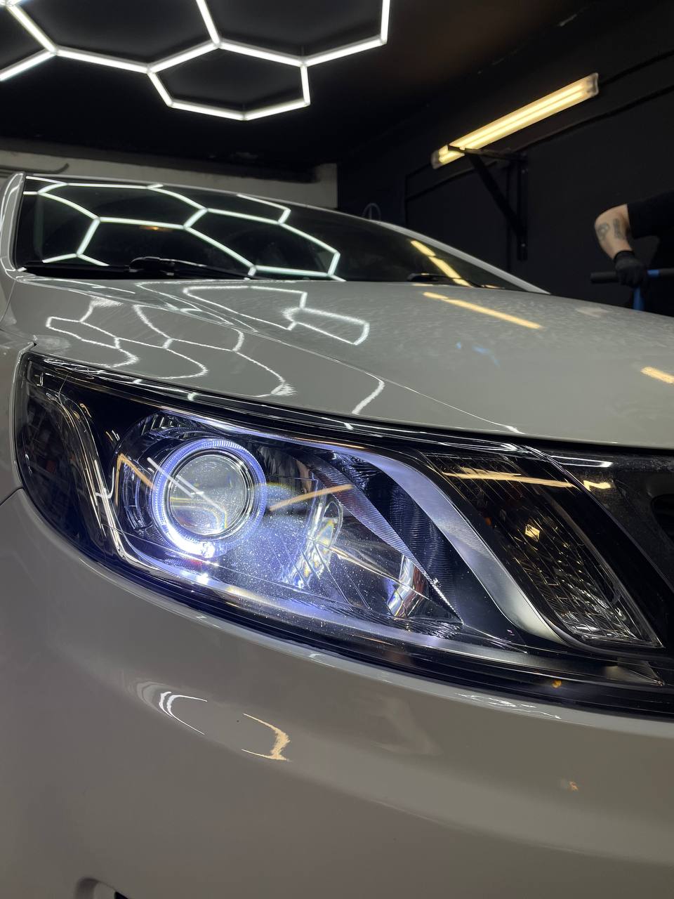 Проводим мойку и обеспылевание внутренней части фары, чистку стекла. Полностью собираем фары, устанавливаем стекла на новый герметик. Производим монтаж фар на автомобиль, подключаем проводку, контрольная проверка. Сборка автомобиля
